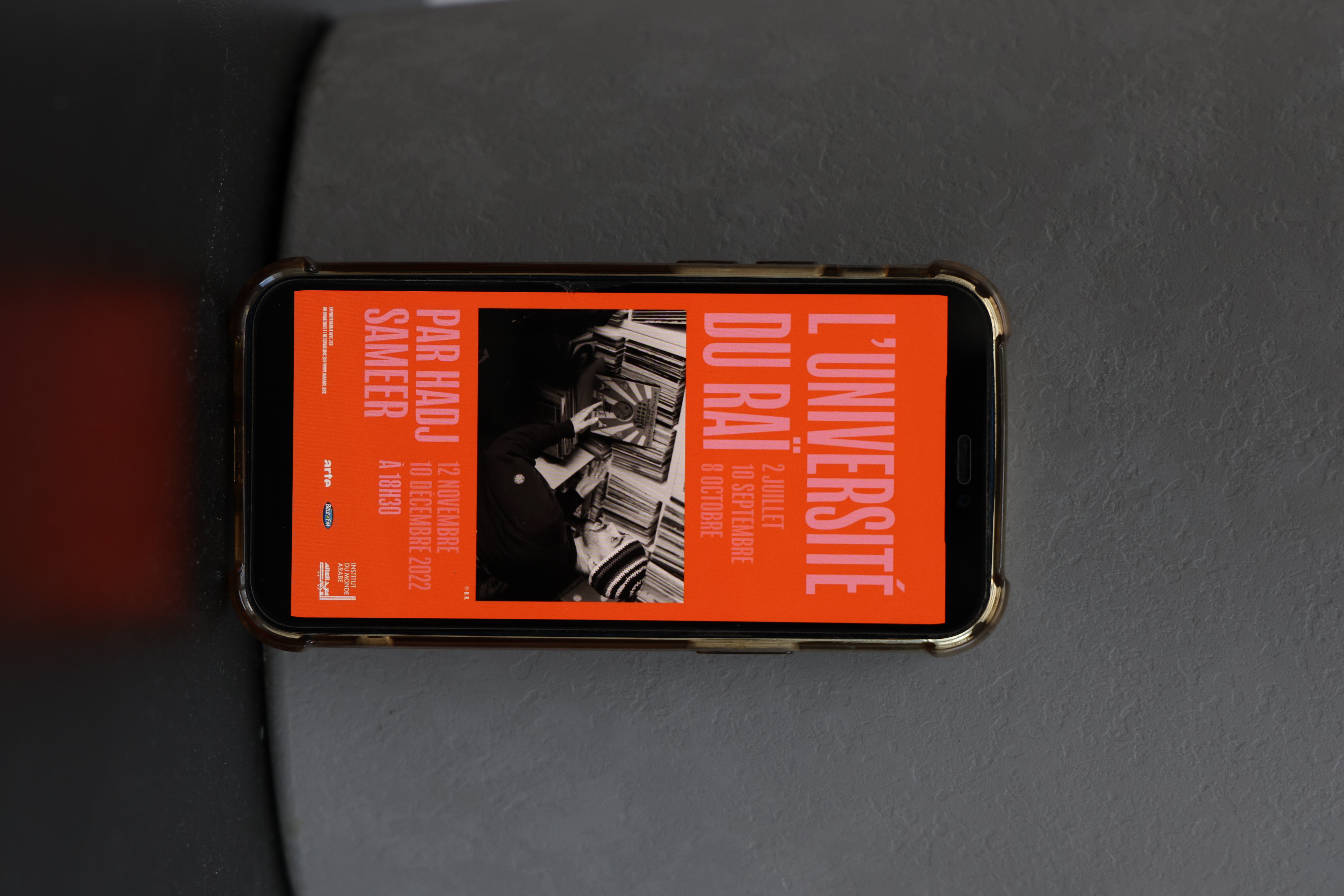 Graphic identity for the launching of the TV show "Raï is not dead" on Arte TV for Institut du monde arabe.