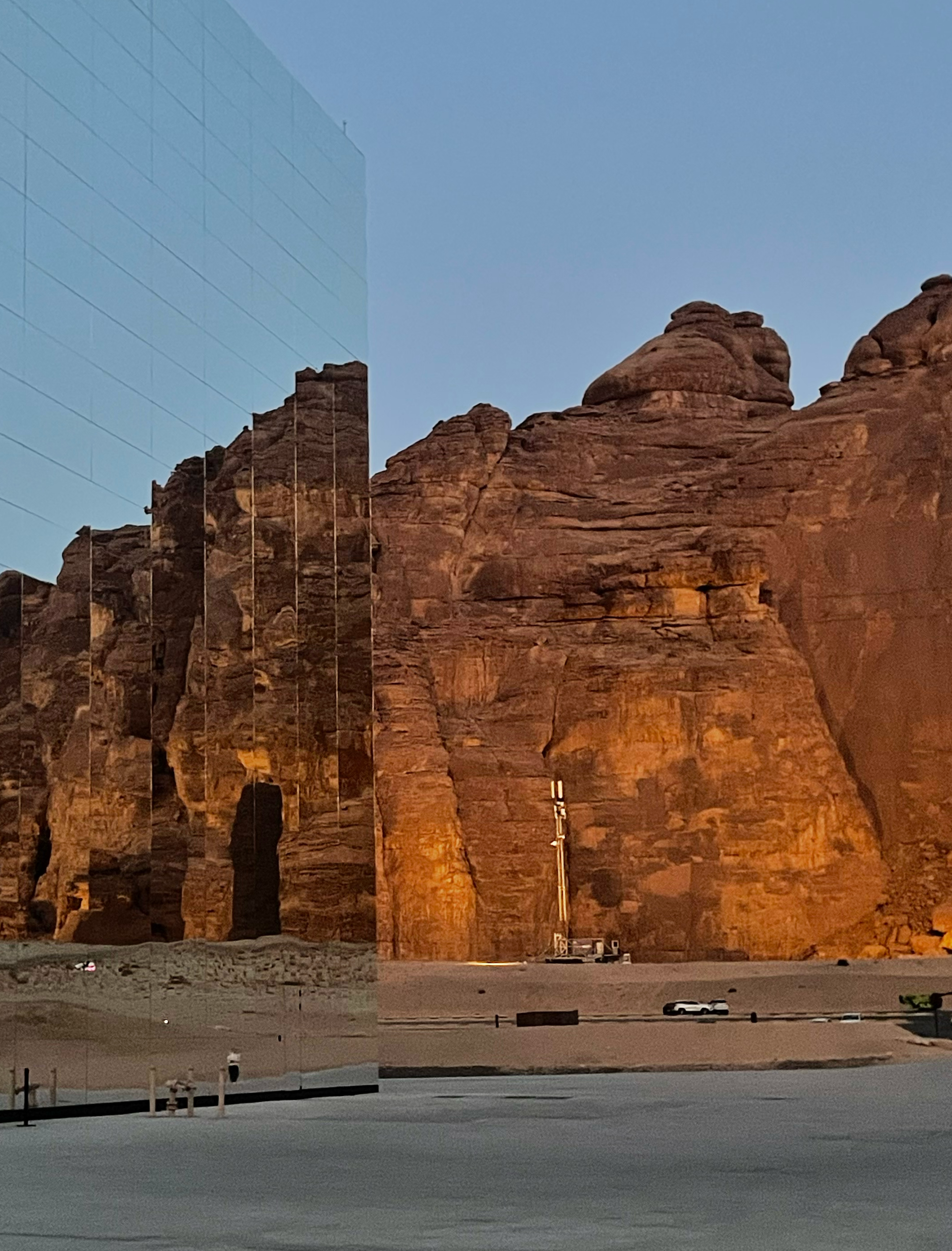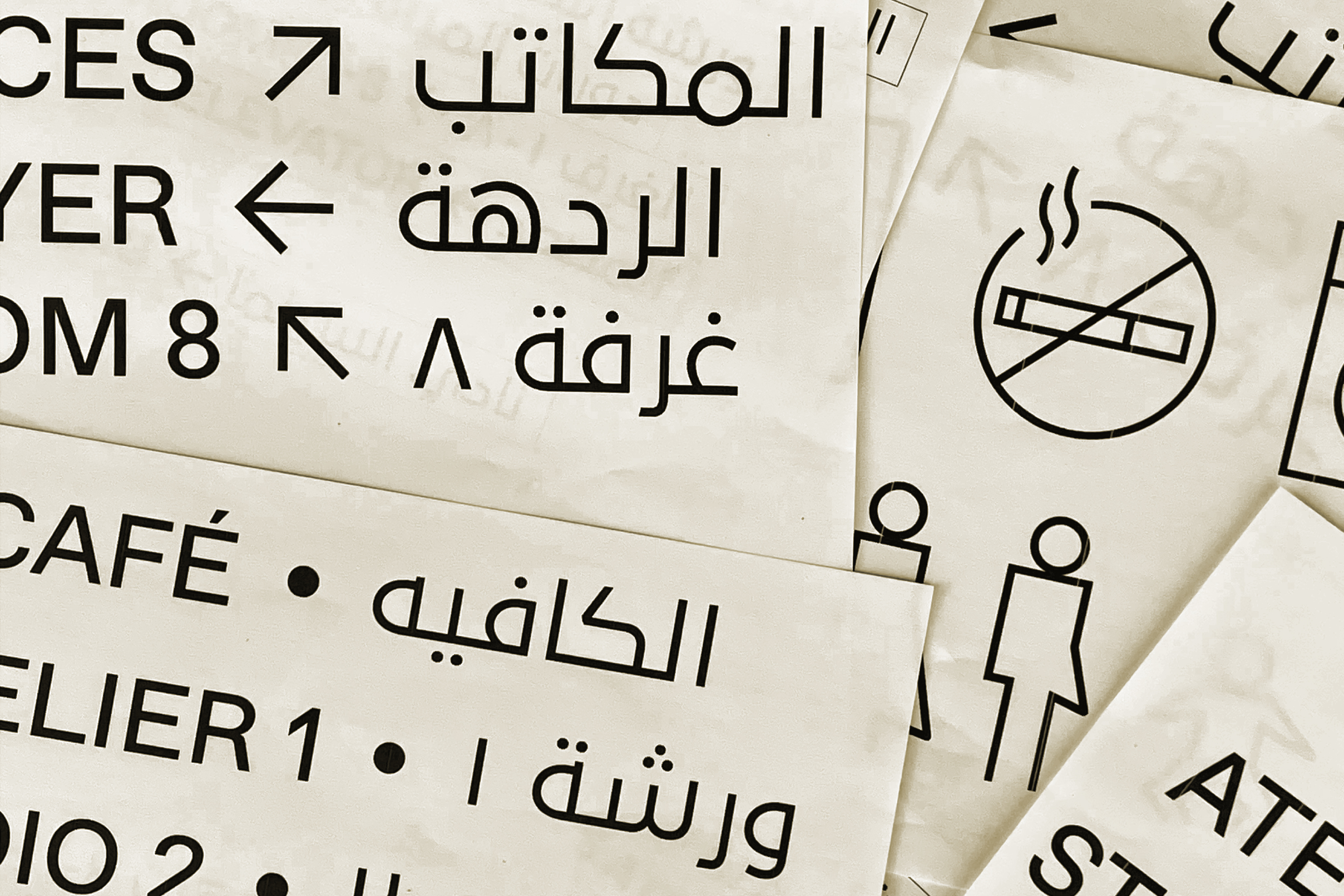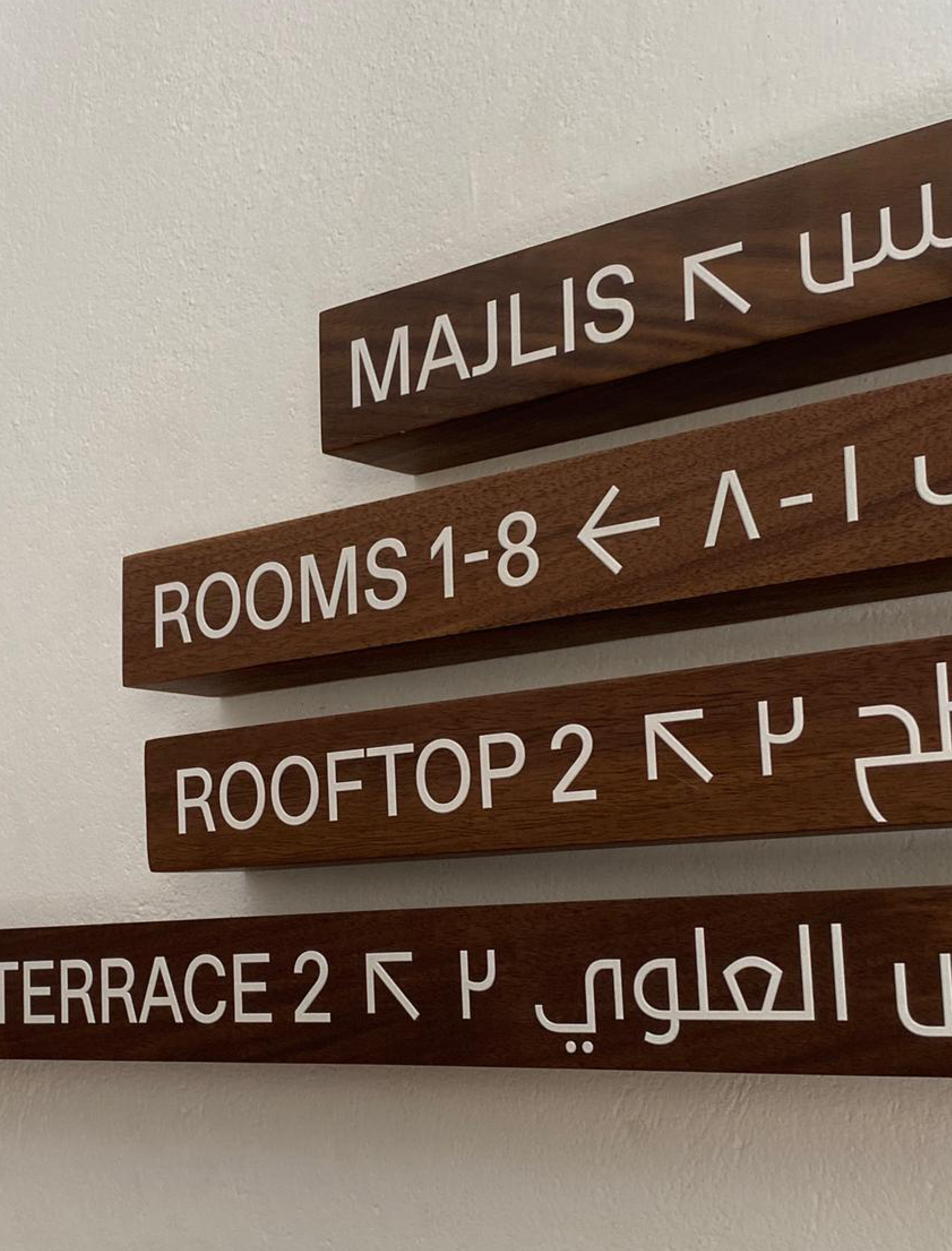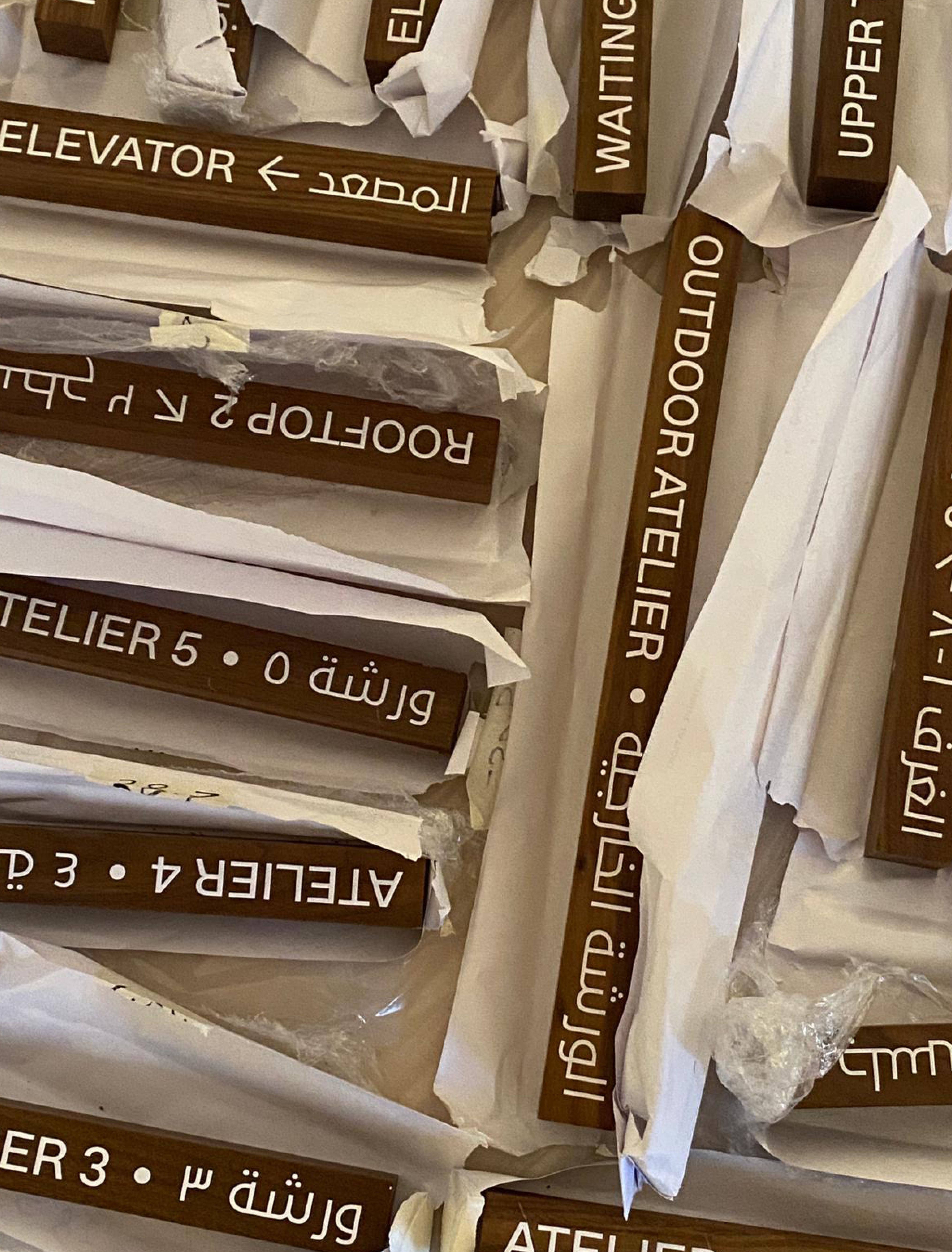 Bilingual signage of the new artistic residency Villa Hegra in AlUla, Saudi Arabia.